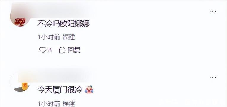 裤子被冷风吹得鼓鼓胀胀的,像个充气球,和她那张小巧精致的脸蛋形成了明显的反差。那天厦门气温偏低,她这副打扮,顿时让网友们纷纷替她担心起冷来。