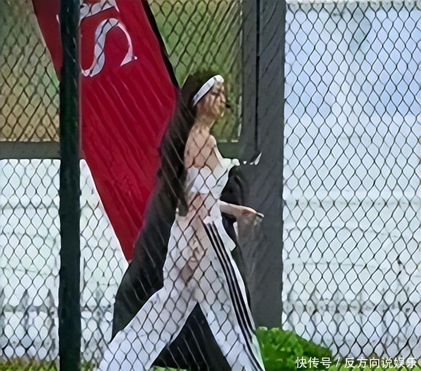 下身那条白色弯刀运动裤,真是个槽点不少,把大腿衬得特别壮。不过,这裤子的版型本来就偏宽松,冷风一吹,裤管鼓鼓胀胀的,像个充气球一样。走起路来不停晃悠,让她的大腿显得格外粗了。